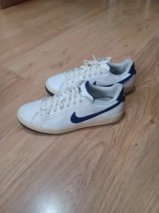 Zapatillas deportivas de la marca Nike. - Diseño clásico en color blanco con detalles en azul. - Cordones blancos. - Suela de goma.