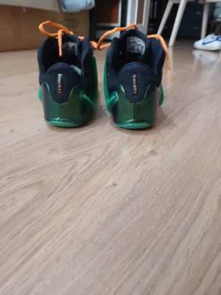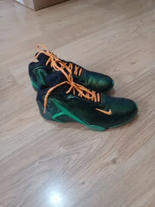 Zapatillas deportivas Nike con un diseño llamativo. - Color principal verde con detalles en naranja. - Talla 42.