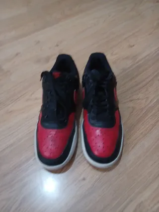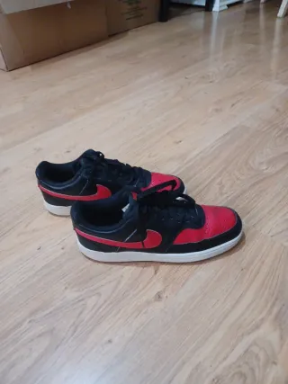 Zapatillas deportivas Nike con un diseño moderno y llamativo. - Combinación de colores negro y rojo. - Cierre con cordones.