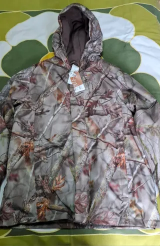 Abrigo con estampado de camuflaje, ideal para actividades al aire libre. Es para niño/a de 14 años esta nueva sin estrenar . - Diseño con capucha. - Forro interior suave.