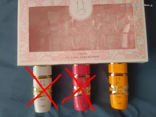 fragancias Yara Tous de Lattafa, los que están tachados ya están vendidos solo me queda el tous tamaño de 25ml. Producto original - Una fragancia en color naranja.