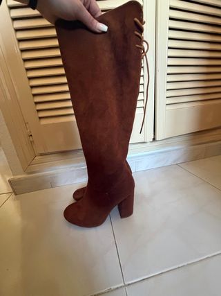 Botas de estilo vaquero con un acabado aterciopelado. - Diseño inspirado en el estilo western. - Material exterior de ante. - Tacón cómodo - ajustables en pantorrilla - Estilo aterciopelado