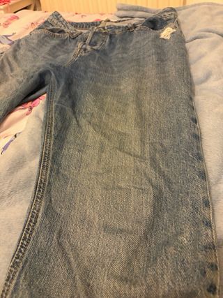 Pantalón vaquero de la marca Bershka. - Diseño moderno y cómodo. - Pierna ancha. - Cintura cruzada.