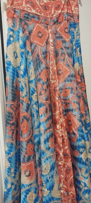 Preciosa falda pantalón con un estampado vibrante y original. Es talla única, lo que la hace muy versátil. - Diseño con motivos florales y geométricos. - Cintura elástica para mayor comodidad. - Tejido ligero y fluido.
