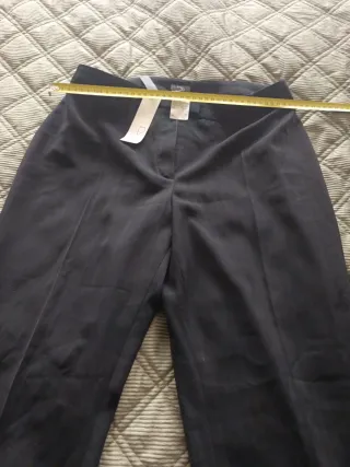 Pantalones largos de mujer. - Lote de dos - Diseño de talle alto. - Cierre de botón y cremallera. - Tela elástica estira a talla 38 - Colores claritos veraniegos