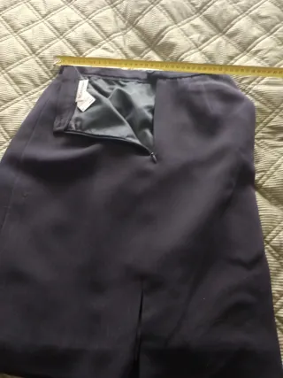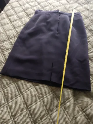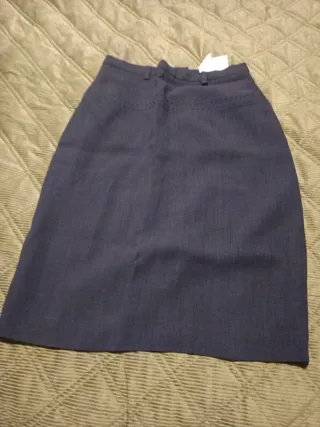 Elegante falda azul marino, perfecta para ocasiones especiales o para vestir. - Diseño clásico y versátil. - Cremallera lateral para un ajuste cómodo. - Forro interior para mayor caída.