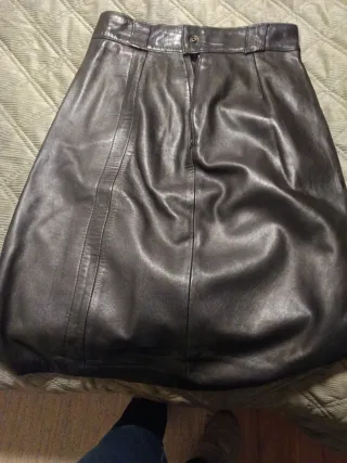 Falda de cuero auténtico en color negro. Diseño elegante y versátil. - Material: Piel - Color: Negro - Cierre de botón y cremallera