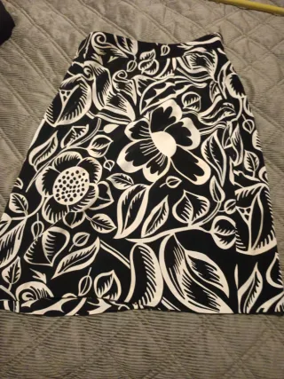 Falda con un llamativo estampado floral en blanco y negro. - Diseño con flores grandes y hojas. - Estampado continuo por toda la prenda.