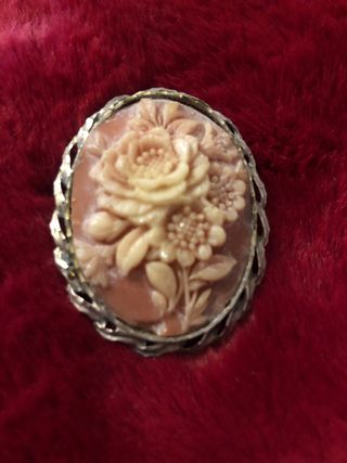Precioso broche vintage con un diseño floral detallado. - Elaborado con un relieve de flores en tonos rosados y crema. - Marco de metal plateado con un diseño calado. - Ideal como accesorio para prendas de vestir o bolsos.