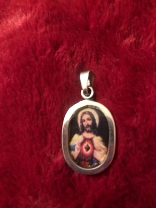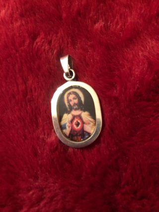 Colgante con la imagen del Sagrado Corazón. - Diseño ovalado. - Colgante con asa para cadena.