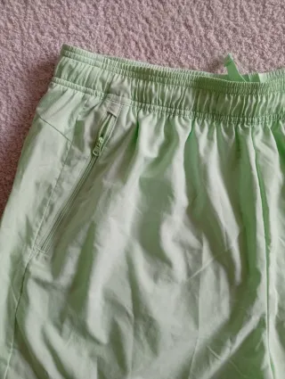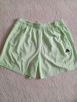 Pantalón corto deportivo de color verde. - Tejido transpirable - Cintura elástica con cordón. - Bolsillos laterales con cremallera. - Logo de Adidas en la pierna.