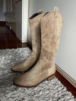 Botas de estilo cowboy en color beige. Un calzado versátil con un diseño clásico. - Material exterior tipo ante. - Detalle de costuras decorativas. - Caña alta. - Tacón bajo.