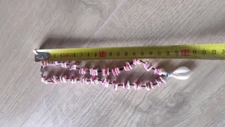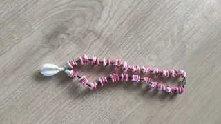 Collar artesanal con un diseño veraniego y colorido. Perfecto para añadir un toque playero a tu estilo. - Detalle de concha central. - Cuentas de colores rosa y blanco. - Cierre de mosquetón. Estilo gargantilla, comprobar medidas en la imagen.