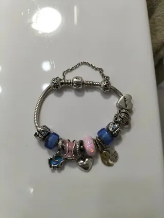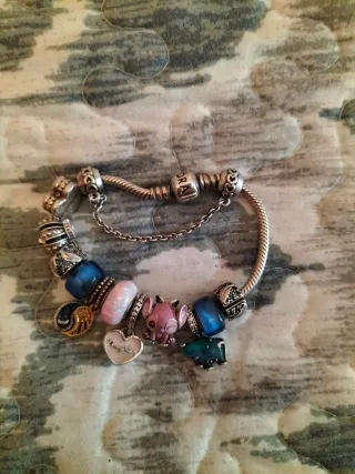 Pulsera Pandora con 11 charms y cadena de seguridad. - Diseño de serpiente. - Incluye charms variados. - Cadena de seguridad.