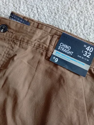 Pantalón chino de corte recto para hombre. - Color marrón. - Talla 40 indicado en las fotos. - Cierre de botón y cremallera. - Bolsillos delanteros y traseros. Más pantalones en mi perfil