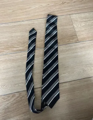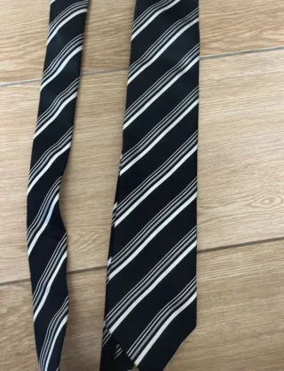 Corbata clásica con un diseño de rayas. - Diseño de rayas diagonales. - Combinación de colores negro y blanco.