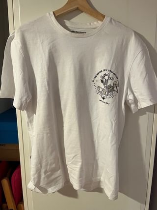 Camiseta de manga corta con estampado frontal. Cuello redondo y manga corta.