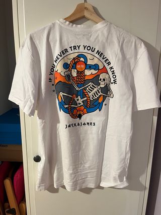 Camiseta de manga corta con un diseño gráfico en la parte delantera. - Estampado con ancla, calavera y texto IF YOU NEVER TRY YOU NEVER KNOW. - Cuello redondo.