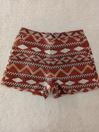 Pantalón corto de mujer - Estampado multicolor. - Tejido con textura. - Corte de tiro alto.