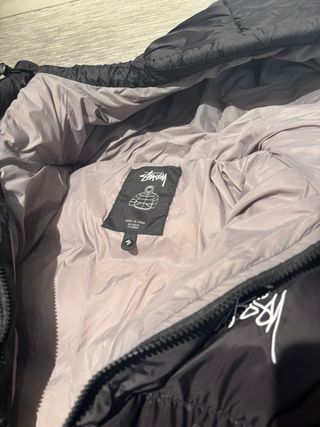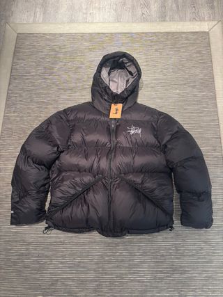 Chaqueta acolchada Stussy en color negro. Diseño moderno y cálido. - Capucha integrada. - Cierre de cremallera frontal. - Bolsillos laterales con ribete. - Cordones ajustables en el bajo.