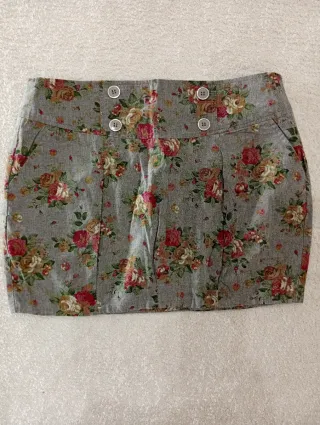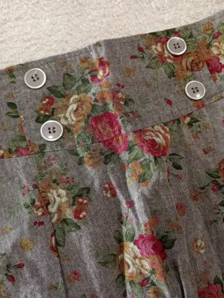 Falda corta con estampado floral y detalles de botones en la cintura. - Diseño de cintura alta. - Cierre de botones. - Estampado de flores variadas.