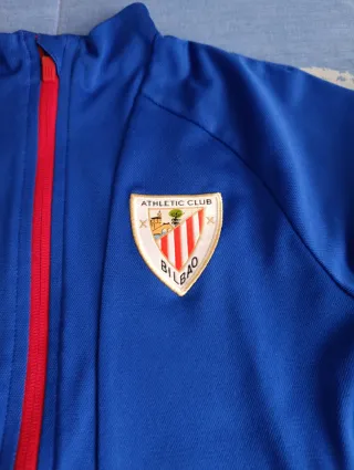 Chaqueta deportiva del Athletic Club. - Cierre completo con cremallera. - Logo de New Balance en el pecho. - Escudo del Athletic Club. - Bolsillos laterales con cremallera.