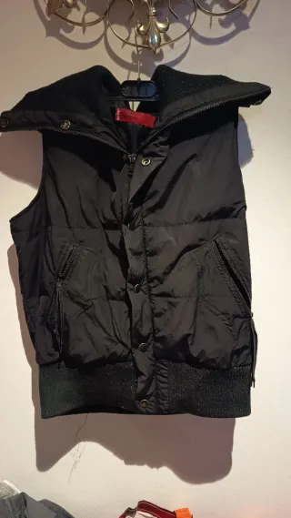 Chaleco acolchado con cuello alto y bolsillos con cremallera. - Cierre de botones a presión. - Puños y cuello de canalé. - Bolsillos laterales con cremallera.