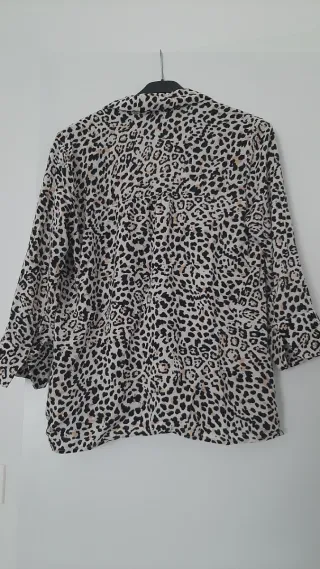 Camisa con un llamativo estampado de leopardo. Es una prenda versátil y con estilo. - Diseño de manga 3/4. - Cuello camisero. - Cierre de botones. -Botón en las mangas. -Medidas largura: 62 centímetros . -Medidas de sisa a sisa : 46 centímetros. -Es amplia,hasta la talla M