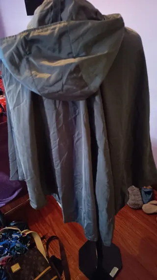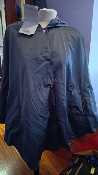 Capa de color gris, nueva y con etiqueta. Es una prenda versátil y moderna. - Diseño tipo poncho. - Cierre de botones. - Capucha integrada.