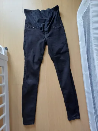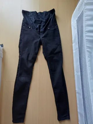 Pantalón vaquero color negro premamá de corte ajustado. Cintura alta elástica para mayor comodidad. Marca Calzedonia super skinni high rib.