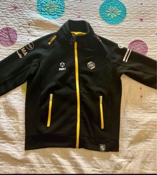 Sudadera original de AGU del equipo Team Jumbo-Visma. Estado completamente nuevo, sin uso real. Tejido grueso y de gran calidad, interior cálido y muy cómoda para entretiempo o invierno suave. Modelo oficial de equipo, difícil de encontrar en este estado. Acabados premium y cremalleras perfectas