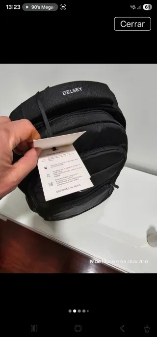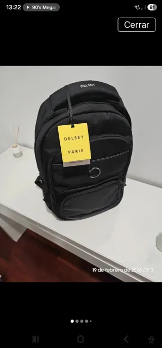 Mochila Delsey en color negro, con etiqueta. - Diseño moderno y funcional. - Compartimento principal espacioso. - Bolsillo frontal con cremallera. - Asas acolchadas ajustables.