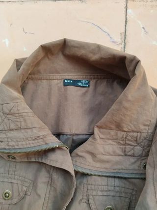 Chaqueta de estilo militar con un diseño moderno. - Cuello alto con detalle. - Bolsillos frontales con solapa y botón. - Cierre de cremallera. - Puños ajustables con botón.