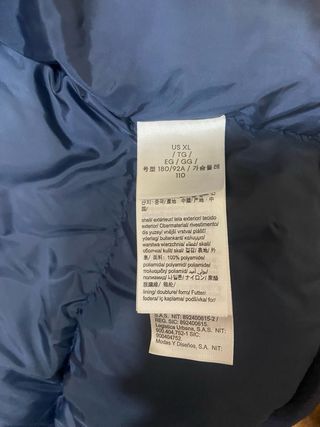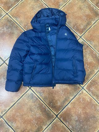 Chaqueta acolchada de Calvin Klein en color azul. Cuenta con capucha y cierre de cremallera. - Diseño moderno y funcional. - Bolsillos laterales con cremallera. - Logo de la marca en la parte frontal. - Se vende por equivocación de talla -Coste 240€
