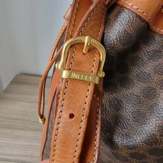 ☆Todos nuestros articulos pasan un control aduanero y son 100% autentificados☆ Bolso Céline de piel estilo bucket con el icónico estampado Macadam.Bolso bandolera cruzada o de hombro, ya que se puede ajustar de las asas laterales.Modelo vintage muy demandado ,ya que ya no se fabrica.El bolso se encuentra en muy buen estado con leves signos uso, pero en general es un bolso que se puede usar muchisimo tiempo. - Herrajes dorados en excelente estado. - Cierre superior con cordones laterales en perfecto estado. -Imterior limpio y sin olor -Asa ajustable a varios tamaños de longitud -Emitimos factura de compra