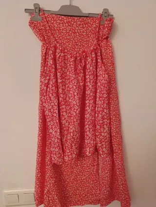 Conjunto de dos piezas para mujer con estampado floral. - Top sin mangas. - Falda larga con vuelo.