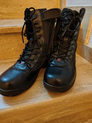 Botas tácticas de trabajo con un diseño robusto y funcional. - Cierre de cordones y cremallera lateral. - Caña alta para mayor sujeción. - Detalle de logo en la lengüeta. Policía, seguridad, etc.