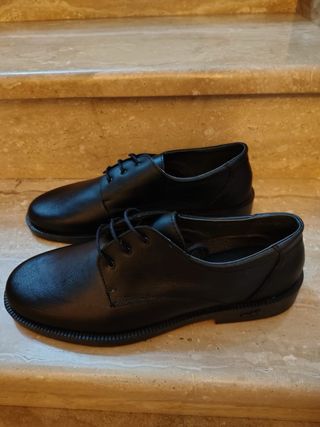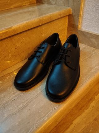 Elegantes zapatos negros de vestir, perfectos para cualquier ocasión formal. - Diseño clásico. - Cierre con cordones. - Material sintético.