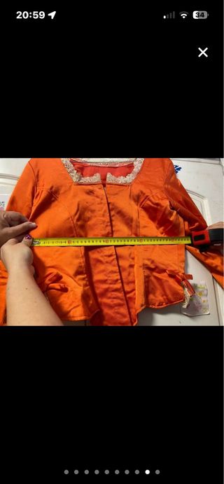 Corpiño de fallera con un bonito diseño y detalles de encaje. - Color naranja vibrante. - Adornado con encaje blanco en puños y cuello. - Tejido con textura.