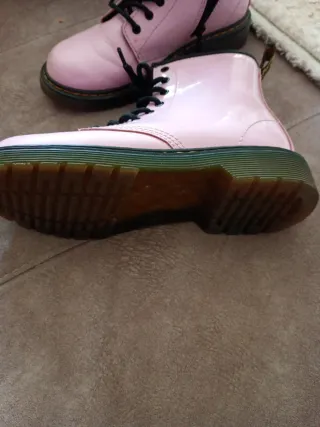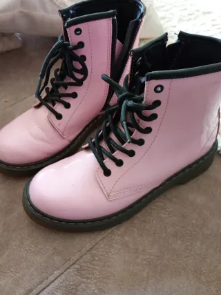Botines de charol con cordones y cremallera lateral. - Color rosa brillante. - Cierre de cordones negros. - Cremallera lateral para facilitar el acceso. - Suela de goma negra.