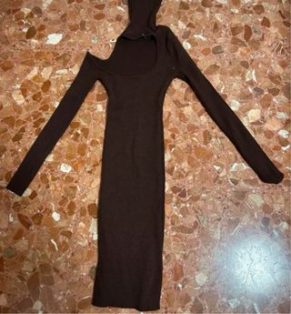 Vestido italiano de talla única que sienta muy bien. - Diseño elegante. - Tejido de punto. - Cuello alto.