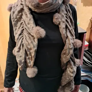 Bufanda de lana tejida con un diseño de trenzas que la hace muy abrigada. - Tejido de lana suave. - Diseño de trenzas. - Combinación de colores verde oliva y amarillo.