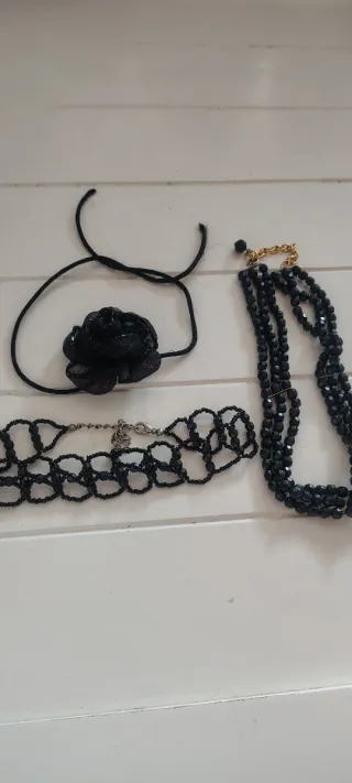 Conjunto de bisutería elegante 3x5€ esta nuevo venta en mano Marbella - Gargantilla con diseño de encaje. - Collar de varias vueltas con cuentas. - Adorno floral negro.