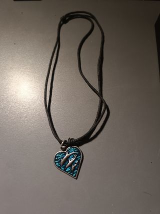 Preciosa gargantilla con un colgante en forma de corazón. El diseño presenta delfines en azul sobre un fondo oscuro. La cuerda es negra y de material textil. - Lleva un cierre de nudo corredizo. - El colgante es de metal con un acabado brillante. - Ideal para un look casual.