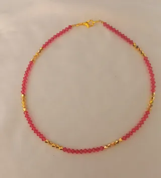 Elegante gargantilla con cuentas de cristal y detalles dorados. - Diseño delicado y brillante. - Cierre de mosquetón dorado.