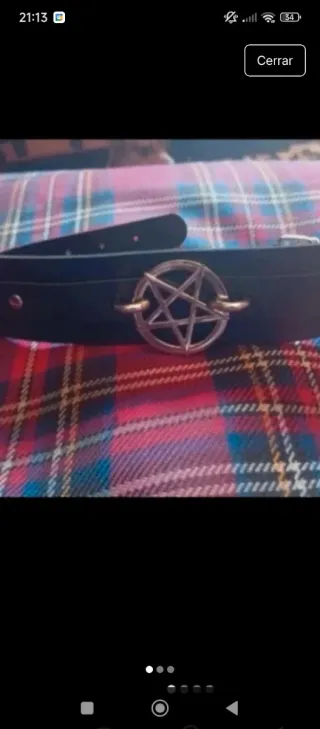 Gargantilla estilo gótico con un diseño de estrella de pentagrama. - Correa de cuero sintético negro. - Detalle central de estrella de pentagrama en tono plateado - Cierre ajustable.