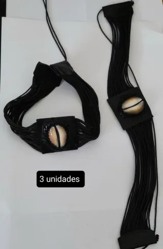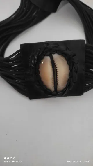 Conjunto de gargantilla y pulsera. Realizado en cuero.precio por conjunto - Diseño con múltiples hilos. - Detalle central en concha