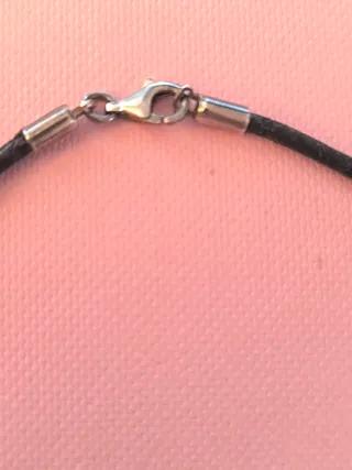 Preciosa gargantilla de cuero. - Cordón de cuero negro. - Cierre metálico plateado. Cada una 3€, las dos 5€.