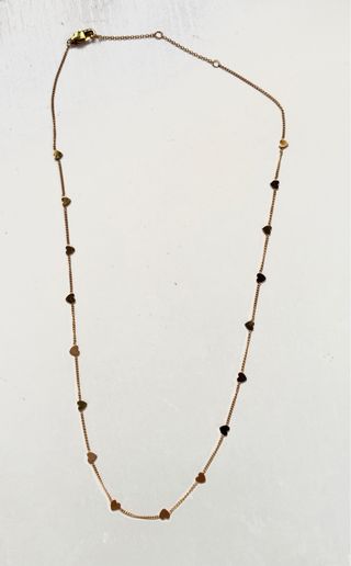 Elegante gargantilla con pequeños dijes de corazón a lo largo de la cadena. Nueva a estrenar - Diseño delicado con corazones. - Cadena fina y ajustable. Se entrega con Estuche de cuero marrón