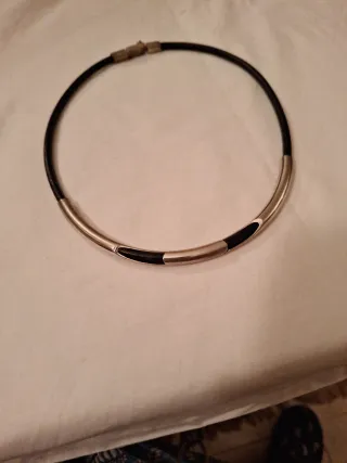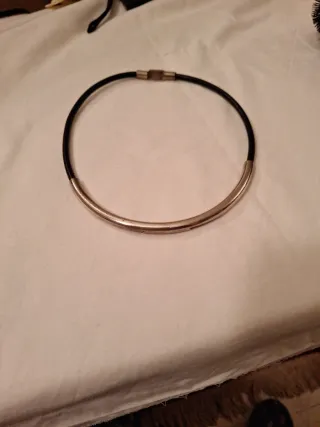 Elegante gargantilla de la marca Tous. Cuero y plata Mide 40 cm - Diseño moderno y sofisticado. - Combina el negro y el plateado para un look versátil.